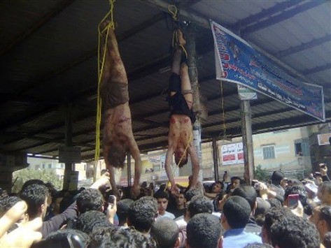 Το πλήθος καταδίωξε τους δύο άνδρες στο χωριό Μαχάλτ Ζιγιάντ, στο Δέλτα του Νείλου, περίπου 140 χλμ. βορείως του Καΐρου, ανέφερε ο Μουντίρ Αμν αλ Γαρμπίγια, ένας αξιωματικός των τοπικών υπηρεσιών ασφαλείας. Αφού τους σκότωσαν, κρέμασαν τα πτώματα στην κολόνα.