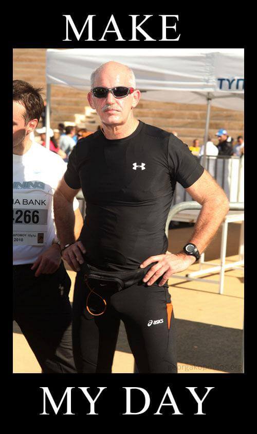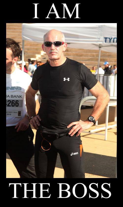 Άντλησε σιγουριά και αυτοπεποίθηση από αυτή τη φωτογραφία. Όλα θα πάνε καλά. Αυτή η φωτογραφία από τον Μαραθώνιο είναι τόσο EPIC WIN που σύμφωνα με πληροφορίες με το που εμφανίστηκε στο Internet τρομοκράτησε το μνημόνιο κι έκανε τους ανθέλληνες πράκτορες της Τρόικας να στέλνουνε πακέτα από δω κι από εκεί για να κάνουν φασαρία και να σταματήσει ο λαός να κοιτάει τον πιο επικά κουλάτο πρωθυπουργό ever. Δείτε και τις υπόλοιπες version...